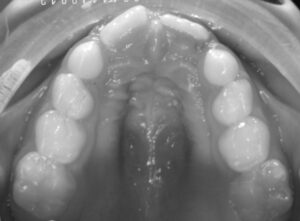 - el paladar se queda estrecho por el NO uso de la nariz, y porque la lengua, cuyo dorso tendría que apoyarse en el paladar ( otro de los factores que inducen a un buen desarrollo del maxilar superior) se queda en una posición baja para permitir esa respiración oral, por lo tanto el maxilar no se desarrolla bien, se queda estrecho y por mucho que le digamos dónde ha de colocar la lengua, no lo hará porque ya no cabe en ese paladar .
